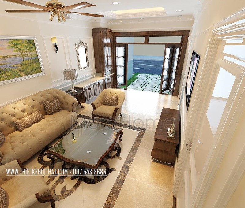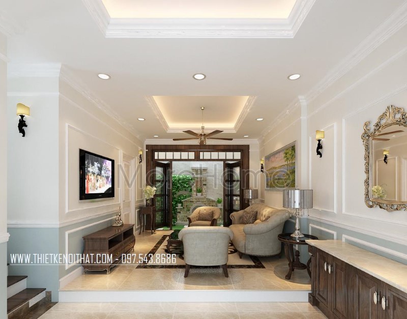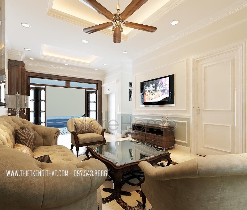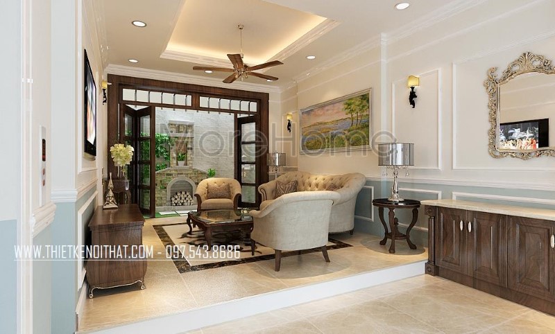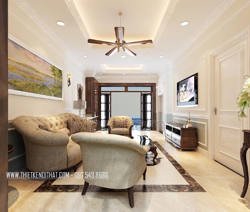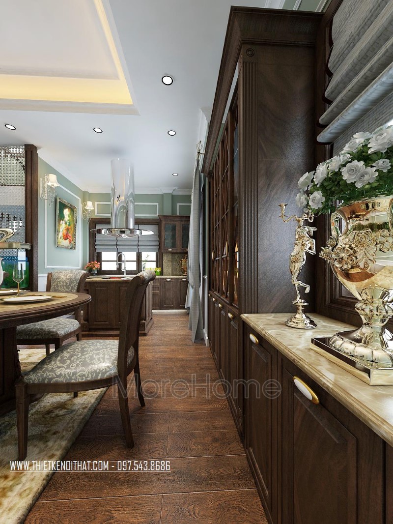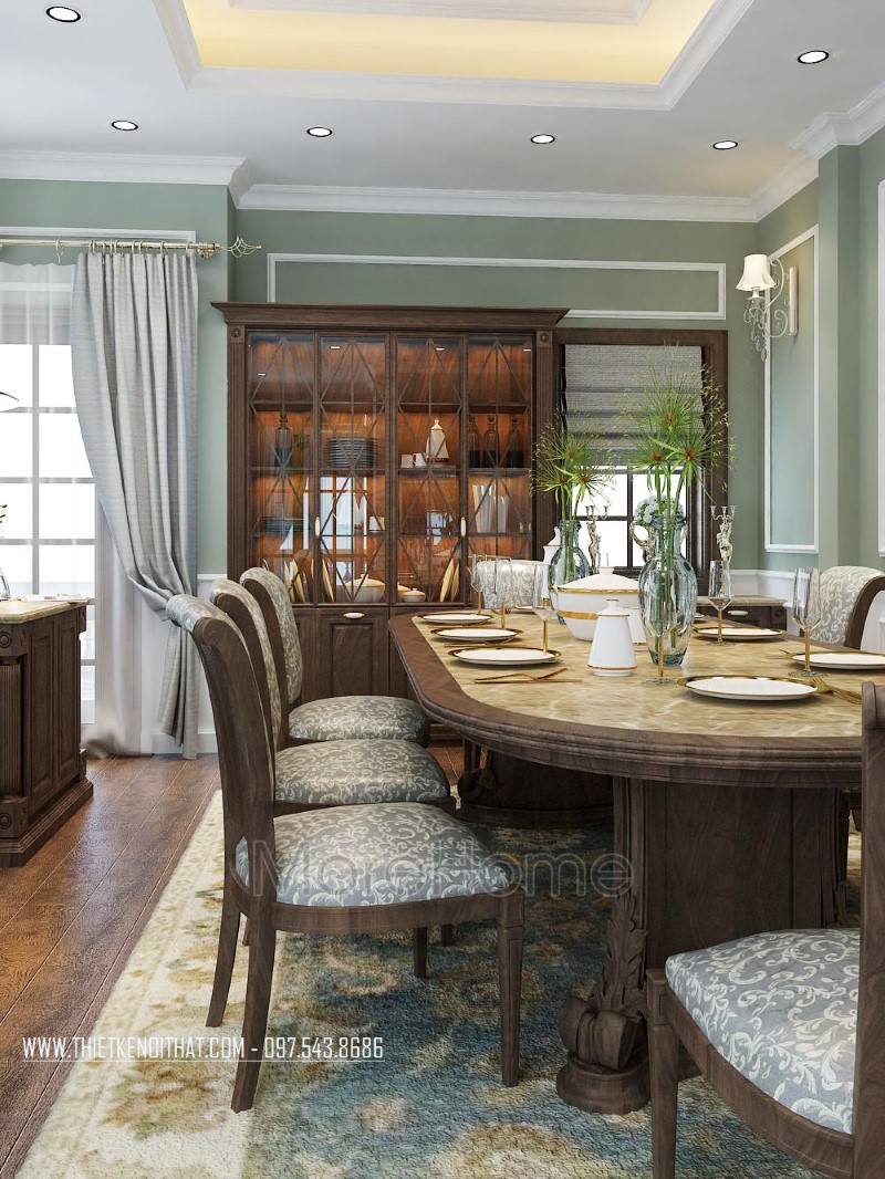 Thi công nội thất gỗ óc chó tân cổ điển cao cấp sang trọng