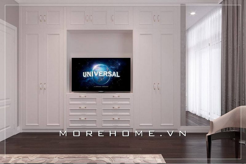 Tủ quần áo âm tường đa năng tích hợp kệ ti vi đầy tiện dụng