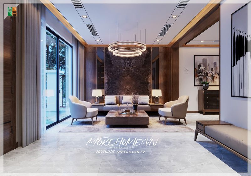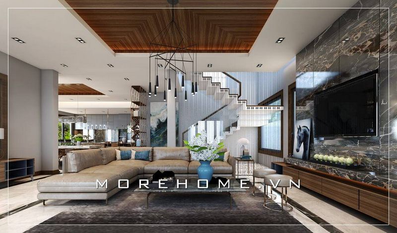 Tiện nghi và ấm cúng trong không gian phòng khách đẹp và sang trọng được thiết kế hài hòa và ấn tượng của Morehome.