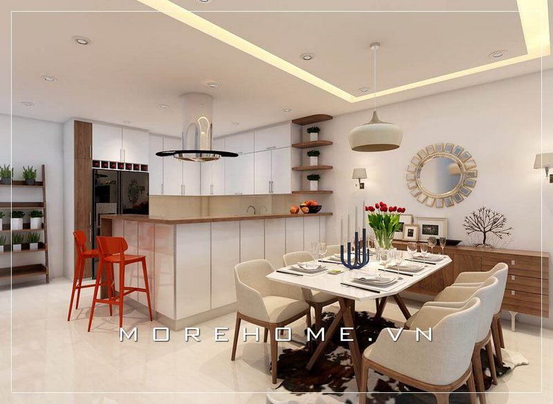 Tủ bếp được thiết kế theo phong cách hiện đại giúp các mẹ có thể dễ dàng nội trợ vào bếp để chuẩn bị những bữa ăn ngon và ấm áp cho gia đình.