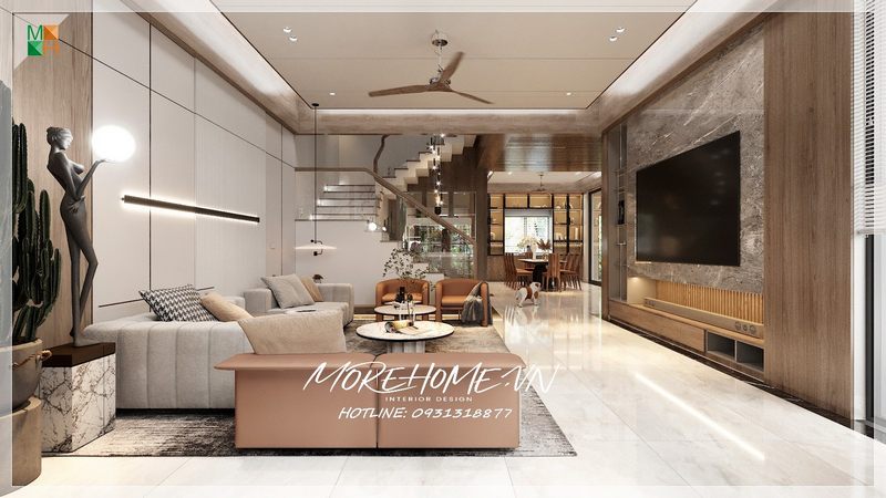 Một mẫu thiết kế phòng khách hiện đại được tạo ra để phù hợp với sự sang trọng, đẳng cấp của biệt thự. Những sắc màu nội thất độc đáo được kết hợp với nhau tạo nên một không gian hài hòa, cuốn hút.