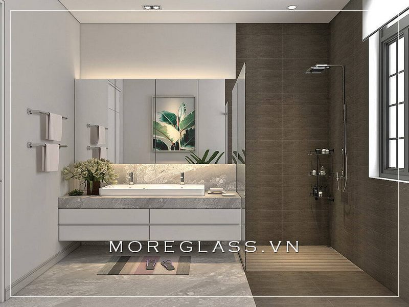 Vách tắm kính cường lực cung cấp một không gian sống tinh tế, sang trọng và tiện nghi. Thiết kế hiện đại của nó sẽ làm cho bạn cảm thấy thoải mái khi bước vào phòng.